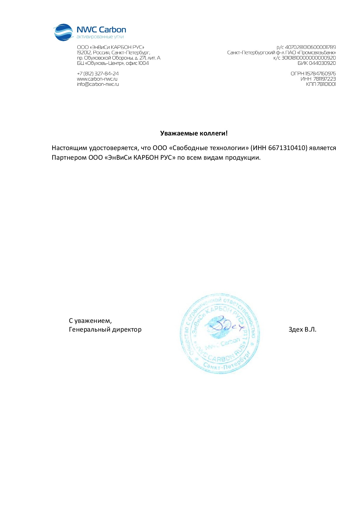 Письмо партнера NWC Carbon